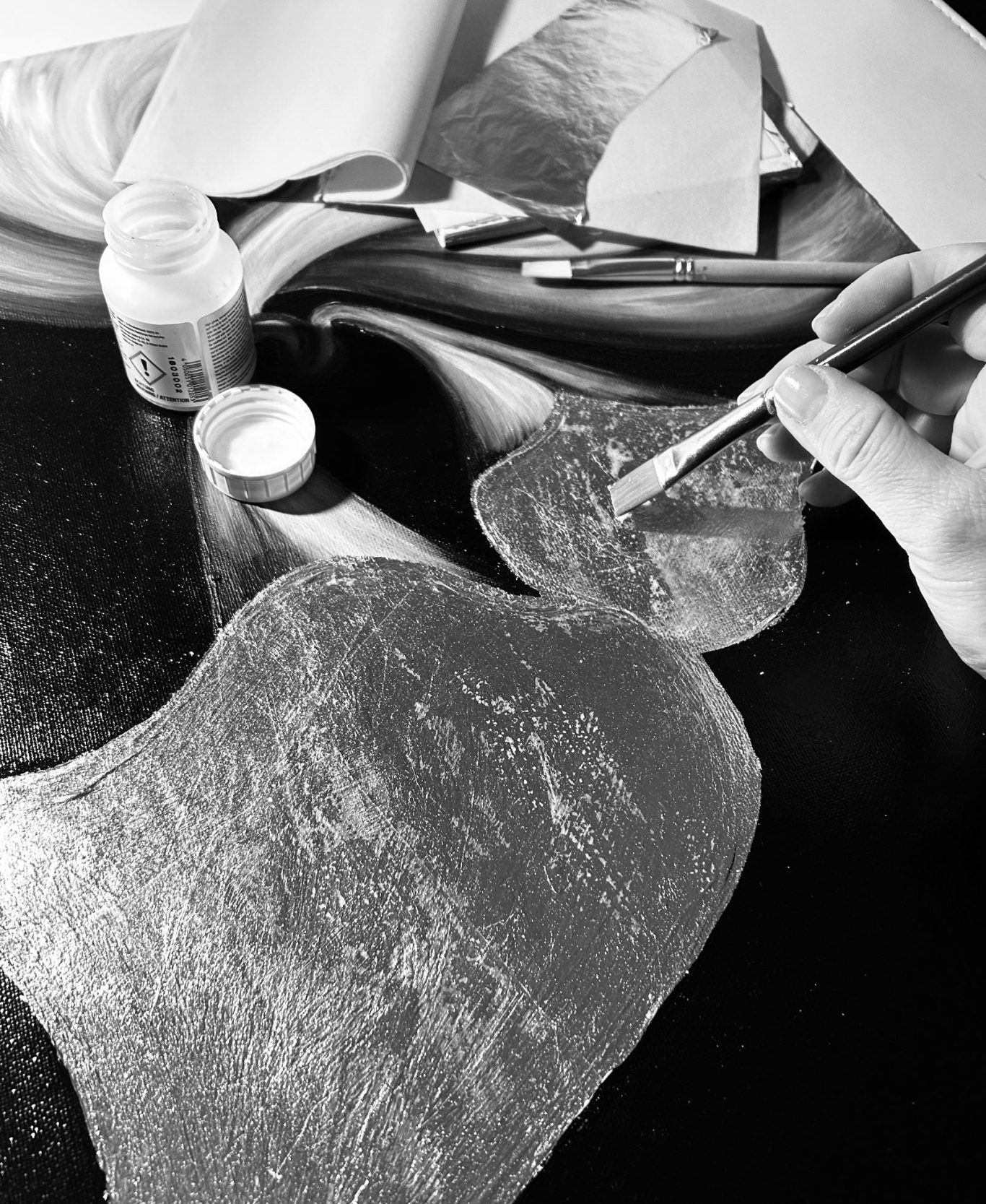 - MEDIUM: Acryl auf Leinwandpappe, Blattsilber